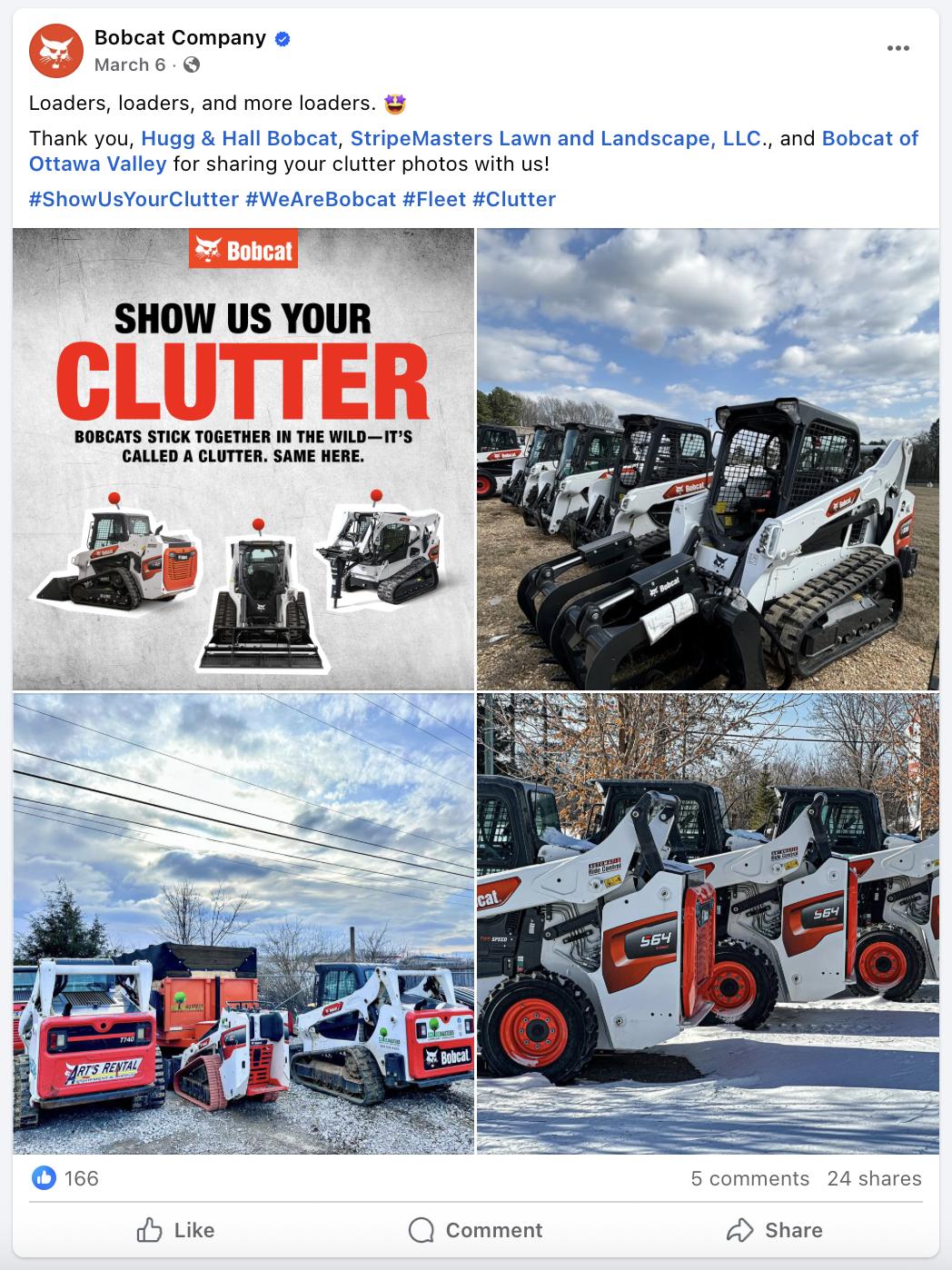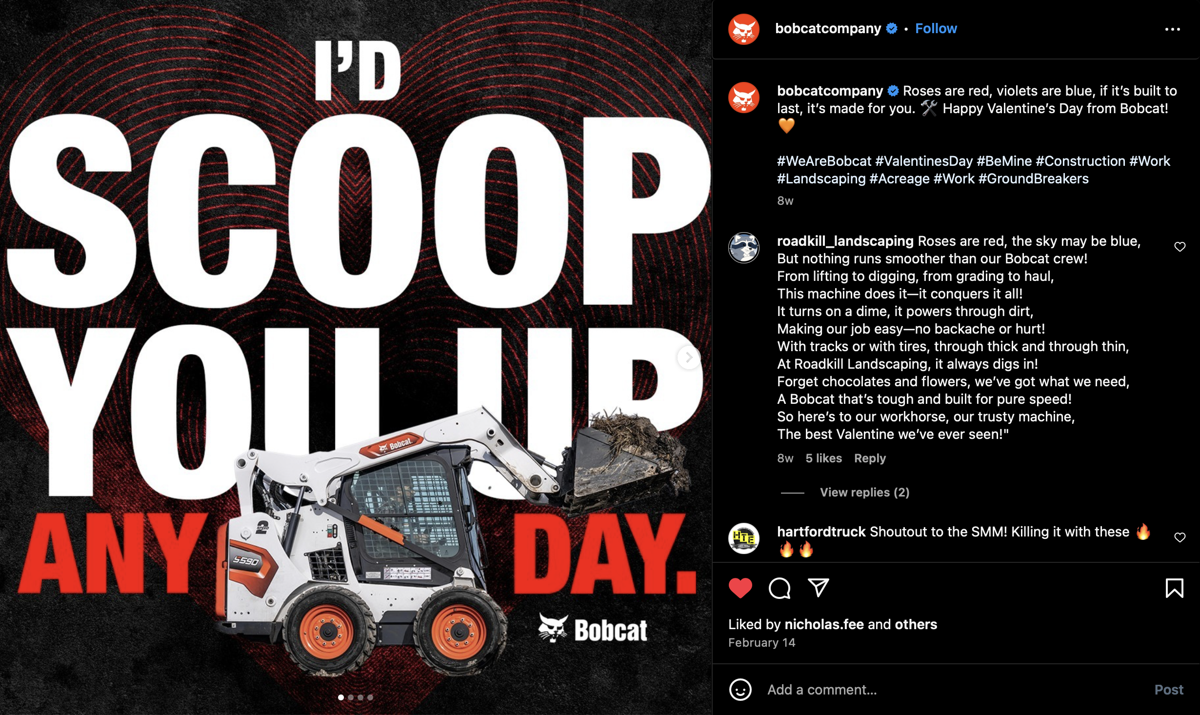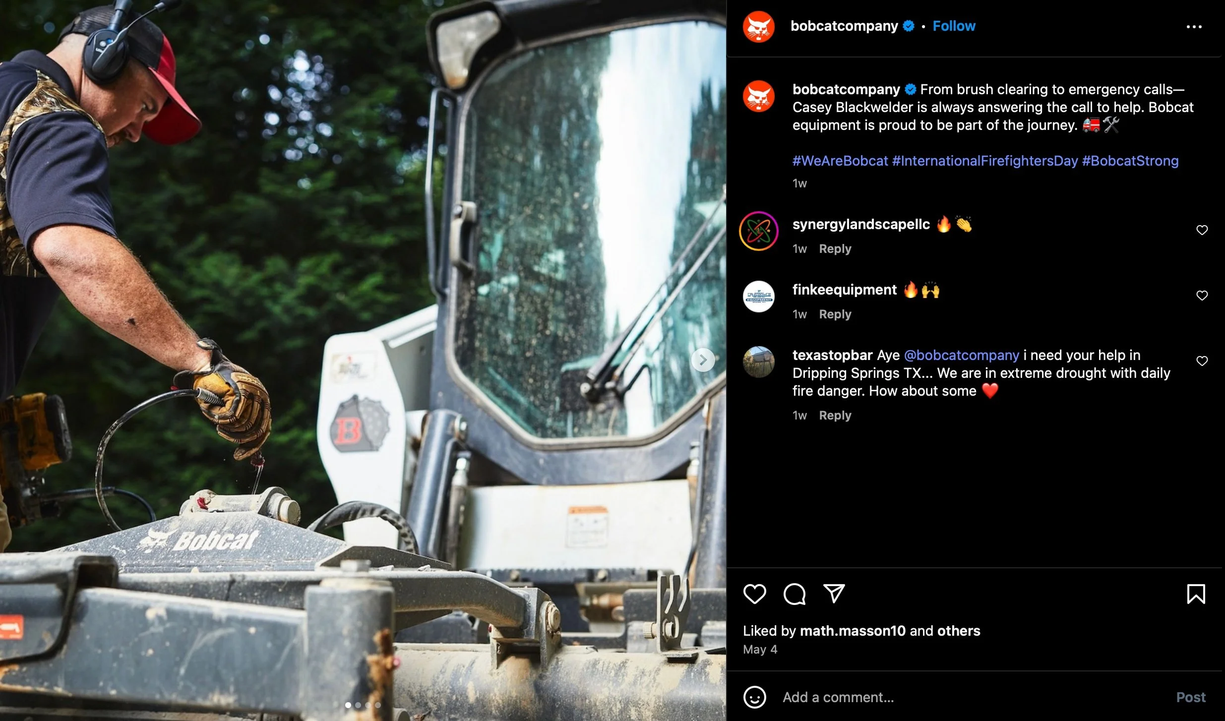 Building on ideas from our strategy sessions, I guided the creative team in creating each asset, ensuring they met Bobcat’s safety requirements, which sometimes meant reining in our wilder ideas. Working with a new client (at the time) meant a lot of back-and-forth during those first couple of months, plus multiple revision cycles. I was soon entrusted to lead the organic social media efforts, overseeing both images and video execution.