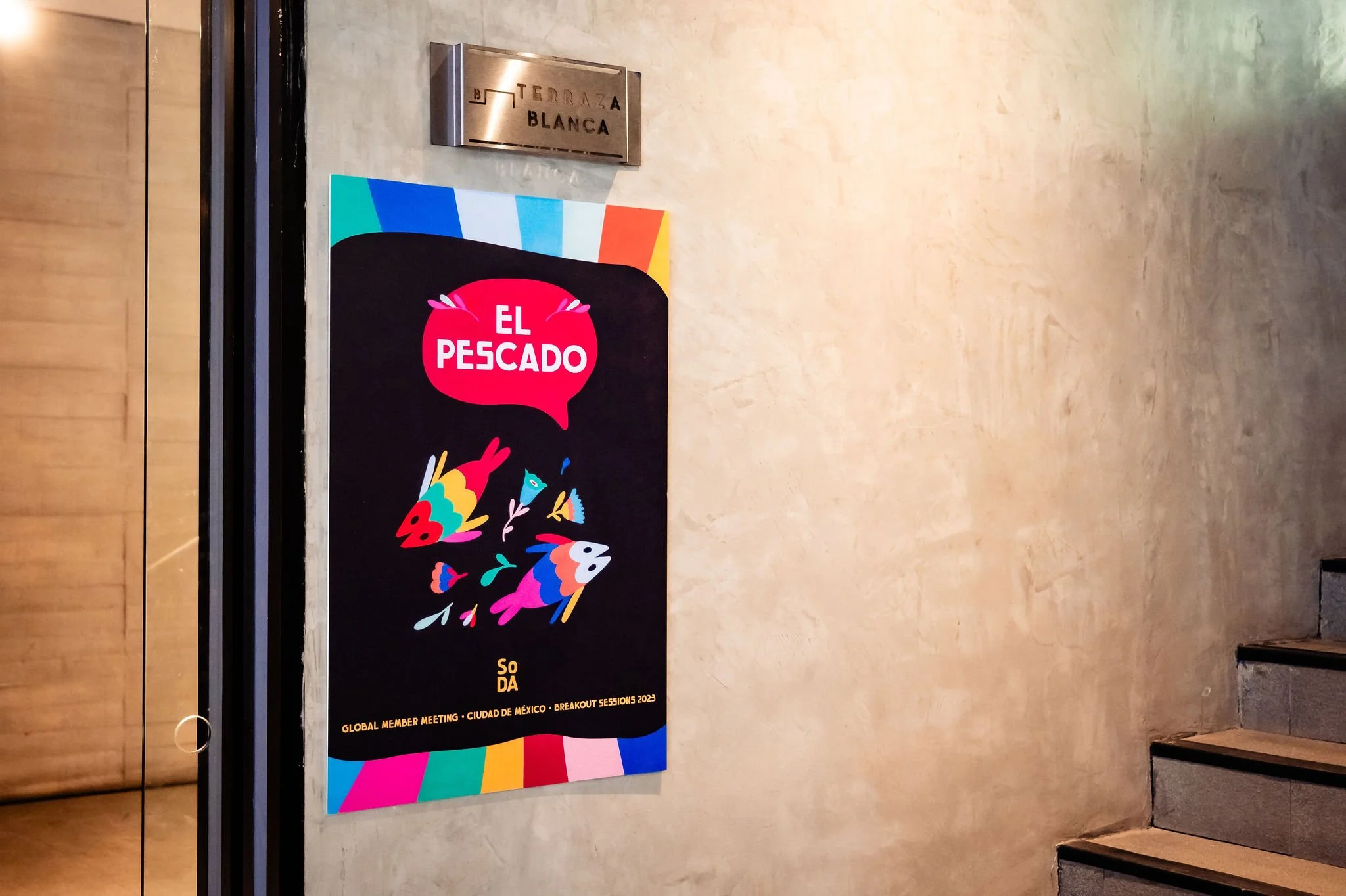 Each breakout area was marked by a vibrant, creature-coded poster—featuring one of seven illustrated Alebrijes. These playful animal guides helped attendees quickly spot their session rooms and added a dose of character to the navigation experience.